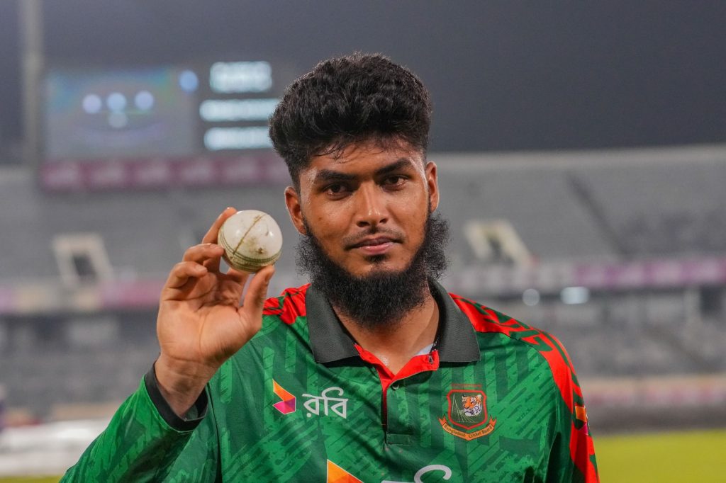 বোলিংয়ে রিশাদ ৬ উইকেট নেওয়ার আগে ব্যাটিংয়ে ১৩ বলে ১ চার ও ২ ছক্কায় গুরুত্বপূর্ণ ২৬ রান করেন। তার শেষের এই ঝড়েই বাংলাদেশের রান কোনোমতে দুইশ পেরিয়ে যায়।
