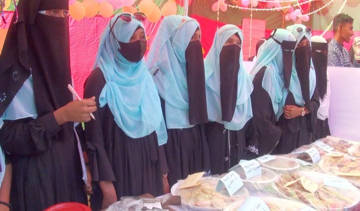উৎসবে বিভিন্ন ধরনের পিঠা নিয়ে অংশ নেন ছাত্রীরা