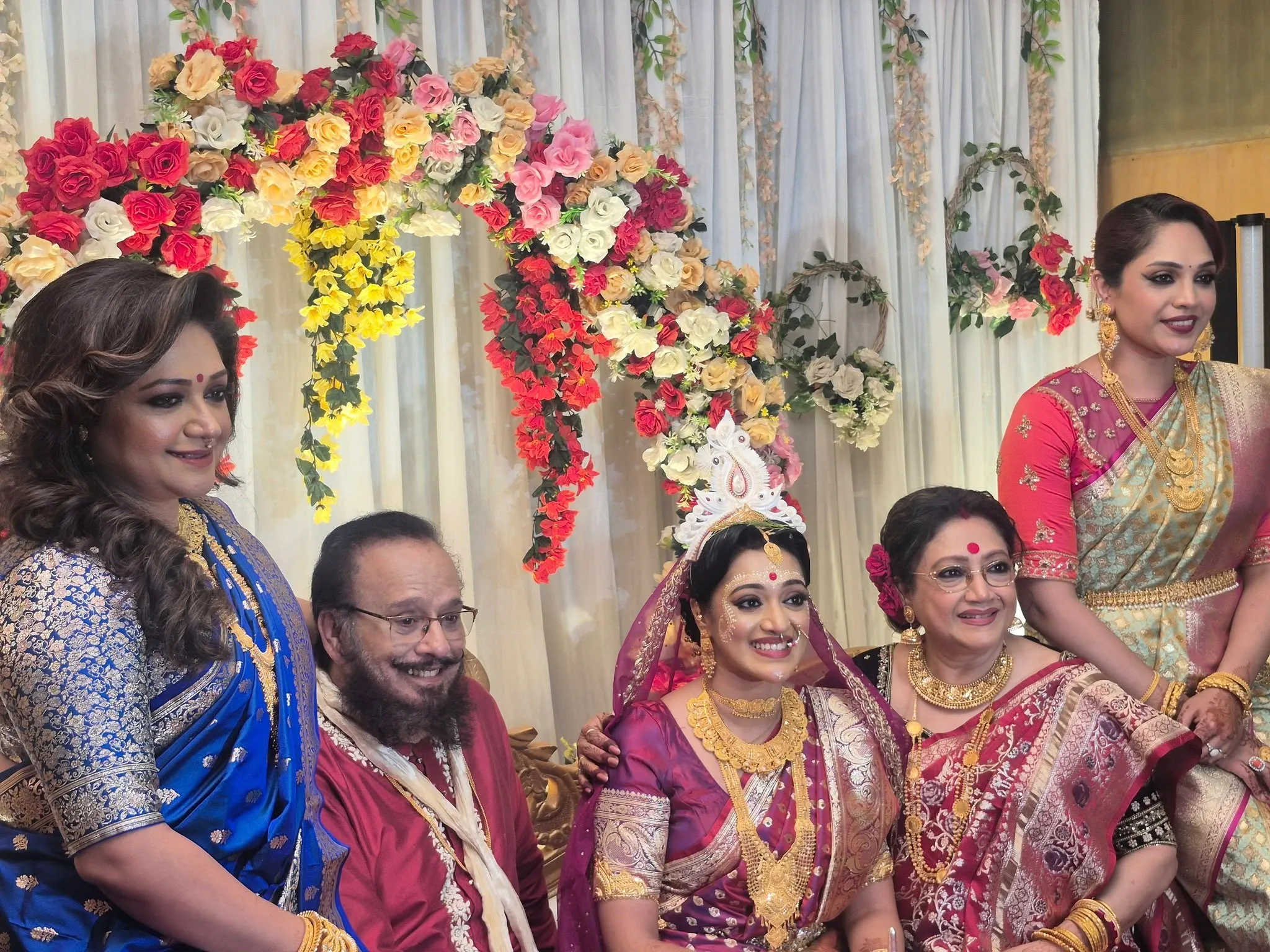 ছড়িয়ে পড়া ভিডিওতে দেখা যায়, কনের সাজে মৌবনীকে একেবারে লক্ষ্মীর মতো লাগছে। বারাণসী থেকে আনা বেগুনি রঙের বেনারসি, সোনার গহনা, শোলার মুকুট, কপালে চন্দন ও মাথায় ভেল পরে মিষ্টি দেখাচ্ছিল মৌবনীকে। বাঙালি বিয়ের সব রীতিনীতি মেনেই বিয়ের কাজ সম্পন্ন হয়। আশীর্বাদ পর্ব, মালা বদল থেকে সিঁদুর দান সবটাই করেছেন তারা। জামাই সৌম্যকে বরণ করতে গিয়ে চোখের জল আটকাতে পারেননি জাদুসম্রাটের স্ত্রী।