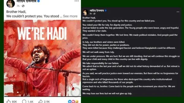 তিনি হুঁশিয়ারি দিয়ে বলেন, “আল্লাহ না করুন, ওসমান হাদির কিছু হলে অন্তর্বর্তী সরকারকেই দায়ভার নিতে হবে।”