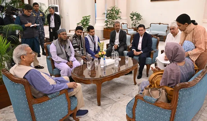 যমুনায় ওসমান হাদির পরিবার প্রফেসর মুহাম্মদ ইউনূসের সঙ্গে সাক্ষাৎ করেন। ছবি: প্রধান উপদেষ্টার প্রেস উইং