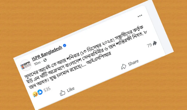 সুদানে সন্ত্রাসী হামলায় ৬ বাংলাদেশি শান্তিরক্ষী নিহত: আইএসপিআর