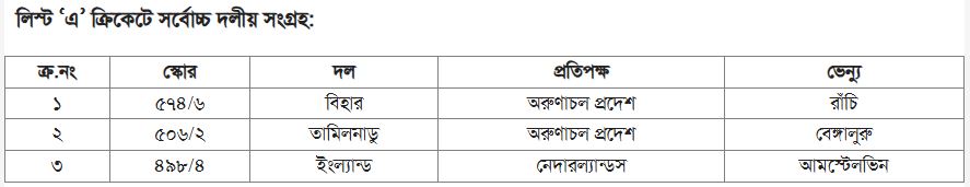 এর মাধ্যমে বিহার ভেঙে দিয়েছে তামিলনাডুর আগের রেকর্ড। ২০২২-২৩ মৌসুমে অরুণাচল প্রদেশের বিপক্ষেই তারা করেছিল ৫০৬/২। এক সকালে কার্যত উড়িয়ে দিয়েছে সব পুরোনো মানদণ্ড। একদিনের ক্রিকেটে এই স্তরে নতুন এক উচ্চতায় পৌঁছে গেছে বিহার।
