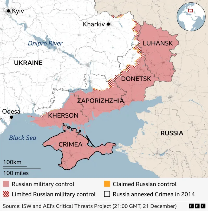 রাশিয়া ২০২২ সালের ফেব্রুয়ারিতে ইউক্রেনে পূর্ণমাত্রার আক্রমণ শুরু করে। বর্তমানে মস্কো দোনেৎস্ক অঞ্চলের প্রায় ৭৫ শতাংশ এবং প্রতিবেশী লুহানস্কের ৯৯ শতাংশ নিয়ন্ত্রণ করছে। এই অঞ্চলগুলো সম্মিলিতভাবে দনবাস নামে পরিচিত।