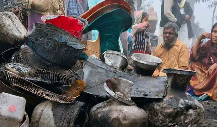 আগুনে পুড়ে যাওয়া একটি রোহিঙ্গা পরিবারের মালপত্র