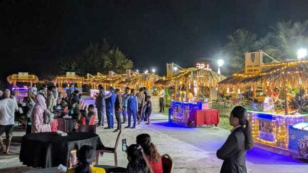 কক্সবাজার প্রতিনিধি || সন্ধ্যা নামতেই কক্সবাজারের ইনানী সমুদ্রসৈকতের আকাশে ঝুলে পড়ে রঙিন আলো। দূরে ঢেউয়ের গর্জন, কাছে ভেসে আসে বারবিকিউয়ের ধোঁয়া। একপাশে কেউ চা হাতে গল্পে মশগুল, অন্যপাশে শিশুরা মকটেইলের গ্লাসে