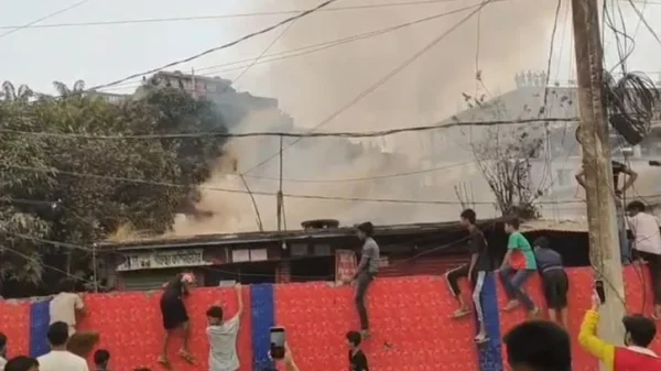 নারায়ণগঞ্জ প্রতিনিধি || নারায়ণগঞ্জের সোনারগাঁয়ে আগুনে ১৫টি দোকান পুড়ে গেছে। সোমবার (২২ ডিসেম্বর) বিকেলে উপজেলার মোগরাপাড়া চৌরাস্তা হাবিবপুর ঈদগাহ এলাকায় ঘটনাটি ঘটে। পরে ফায়ার সার্ভিসের দুটি দল প্রায় এক ঘণ্টার