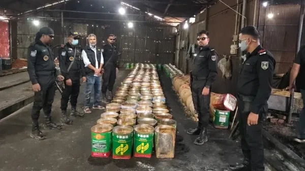 সাভার (ঢাকা) প্রতিনিধি || ঢাকার ধামরাইয়ে ভেজাল গুড় উৎপাদনের একটি কারখানায় অভিযান চালিয়েছে র্যাব-৪। এসময় সেখান থেকে ক্ষতিকর রাসায়নিক উপাদান জব্দ করেছে তারা। এ ঘটনায় কারখানার মালিককে ৬ লাখ ৩১ হাজার