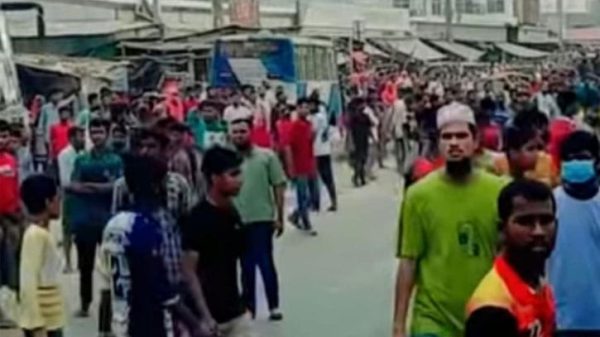 গাজীপুরে বকেয়া বেতনের দাবিতে শ্রমিকদের সড়ক অবরোধ