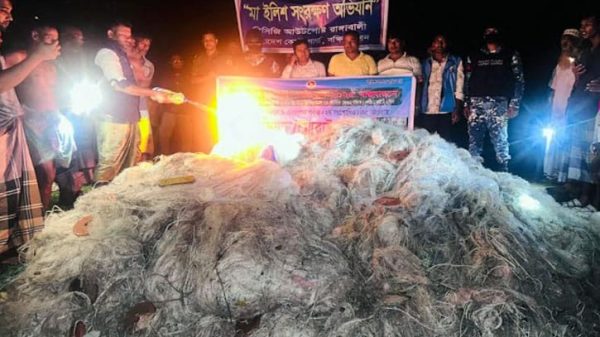 মা ইলিশ রক্ষার অভিযান: ৫০ হাজার মিটার অবৈধ জাল ধ্বংস