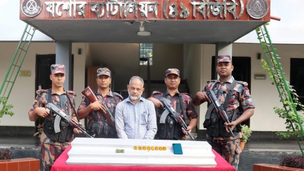 নিজস্ব প্রতিবেদক || যশোরের মুড়লী মোড় এলাকায় অভিযান চালিয়ে প্রায় ২ কোটি টাকার স্বর্ণের বার ও আংটিসহ এক পাচারকারীকে আটক করেছের বর্ডার গার্ড বাংলাদেশের (বিজিবি) সদস্যরা। গোপন সংবাদের ভিত্তিতে ৪৯
