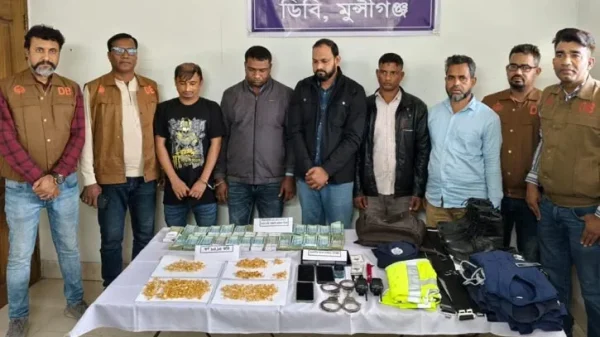 মুন্সীগঞ্জ প্রতিনিধি || ঢাকা-চট্টগ্রাম মহাসড়কে পুলিশ পরিচয়ে দুই ভাইয়ের কাছ থেকে ১৪৫ ভরি স্বর্ণ, নগদ টাকা ও মোবাইল ফোন ছিনিয়ে নেওয়ার ঘটনায় পাঁচজনকে গ্রেপ্তার করেছে জেলা গোয়েন্দা (ডিবি) পুলিশ। তাদের মধ্যে