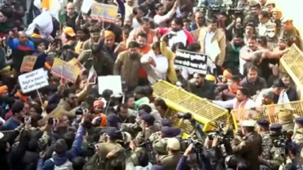 আন্তর্জাতিক ডেস্ক || ভারতের রাজধানী দিল্লিতে বাংলাদেশ হাইকমিশনের সামনে ব্যাপক বিক্ষোভ চলছে। এমনকি পুলিশের ব্যারিকেড ভেঙে হাইকমিশনের দিকে এগোনোর চেষ্টা করছেন বিক্ষোভকারীরা। তাদের আটকানোর চেষ্টা করছেন পুলিশ। মঙ্গলবার (২৩ ডিসেম্বর)