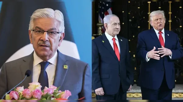 আন্তর্জাতিক ডেস্ক || পাকিস্তানের প্রতিরক্ষামন্ত্রী খাজা আসিফ বলেছেন, “যুক্তরাষ্ট্রের উচিত তাদের সামরিক বাহিনীকে নির্দেশ দেওয়া যাতে তারা ইসরায়েলের প্রধানমন্ত্রী বেঞ্জামিন নেতানিয়াহুকে বন্দি করেন এবং যেকোনো মার্কিন আদালতে নেতানিয়াহুর বিচার করেন।”