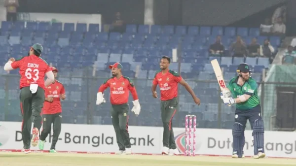 খেলাধুলা প্রতিবেদক || আয়ারল্যান্ডকে সিরিজ নির্ধারণী ম্যাচে মাত্র ১১৭ রানে গুটিয়ে দিয়েছে বাংলাদেশ। বোলারদের নিয়ন্ত্রিত বোলিংয়ে আইরিশ ব্যাটসম্যানরা ছিলেন দিশেহারা। মোস্তাফিজুর রহমান ও রিশাদ হোসেন পেয়েছেন ৩টি করে উইকেট। বোলারদের