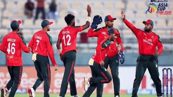 খেলাধুলা প্রতিবেদক || এশিয়া কাপ রাইজিং স্টারস প্রতিযোগিতায় দ্বিতীয় ম‌্যাচেও জয় পেয়েছে বাংলাদেশ। কাতারের দোহায় সোমবার বাংলাদেশ হারিয়েছে আফগানিস্তানকে। স্রেফ উড়িয়ে দিয়েছে আফগানদের। টানা দুই জয়ে সেমিফাইনালে এক পা দিয়ে রেখেছে