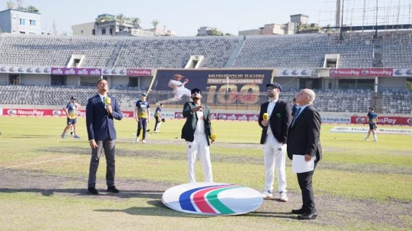 খেলাধুলা প্রতিবেদক || ২৬০৭ তম টেস্ট চলছে মিরপুর শের-ই-বাংলা জাতীয় ক্রিকেট স্টেডিয়ামে। বাংলাদেশের ১৫৬তম। টেস্ট ক্রিকেটে বাংলাদেশের বয়স ২৫ পেরিয়েছে। লম্বা পথ পেরোনোর পর বাংলাদেশ পেল টেস্ট ক্রিকেটের একশতম খেলোয়াড়। মুশফিকুর