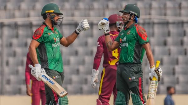 খেলাধুলা ডেস্ক || ::সংক্ষিপ্ত স্কোর:: বাংলাদেশ: ২৯৬/৮ (৫০ ওভারে) ওয়েস্ট ইন্ডিজ: ৬৭/৭ (২১.৩ ওভারে) ৩ রানে ৫ উইকেট হারিয়ে ধুঁকছে ওয়েস্ট ইন্ডিজ ২৯৭ রানের বড় টার্গেট তাড়া করতে নেমে ৬৩
