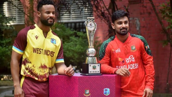 নিজস্ব প্রতিবেদক || বাংলাদেশ ও ওয়েস্ট ইন্ডিজের মধ্যেকার তিন ম্যাচের টি-টোয়েন্টি সিরিজের ট্রফি উন্মোচন করা হয়েছে। রবিবার (২৬ অক্টোবর) দুপুরে চট্টগ্রাম মহানগরীর শতবর্ষী সেন্ট্রাল রেলওয়ে বিল্ডিংয়ের (সিআরবি) সামনে দুই দলের অধিনায়ক