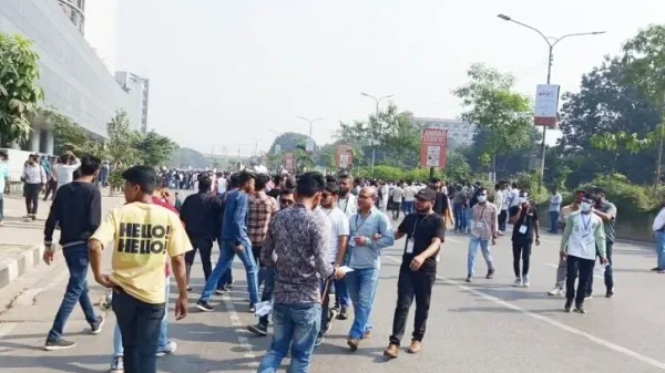 নিজস্ব প্রতিবেদক || রাজধানীর আগারগাঁওয়ে বাংলাদেশ টেলিযোগাযোগ নিয়ন্ত্রণ কমিশন (বিটিআরসি) ভবনের সামনে মোবাইল ফোন ব্যবসায়ী ও কর্মচারীরা সড়ক অবরোধ করে বিক্ষোভ করছেন। রবিবার (৭ ডিসেম্বর) বেলা সাড়ে ১১টার দিকে সড়ক