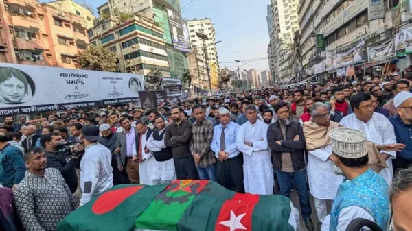 নিজস্ব প্রতিবেদক || দুর্বৃত্তের গুলিতে নিহত ঢাকা মহানগর উত্তর স্বেচ্ছাসেবক দলের সাবেক সাধারণ সম্পাদক আজিজুর রহমান মুছাব্বিরের প্রথম জানাজা অনুষ্ঠিত হয়েছে। বৃহস্পতিবার (৮ জানুয়ারি) বাদ জোহর নয়াপল্টনের দলের কেন্দ্রীয় কার্যালয়ের
