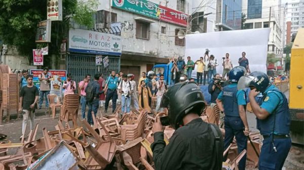 নিজস্ব প্রতিবেদক || রাজধানীর কাকরাইলে জাতীয় পার্টির কেন্দ্রীয় কার্যালয়ের সামনে ডাকা কর্মী সমাবেশ ঘিরে উত্তেজনা সৃষ্টি হয়েছে। পরিস্থিতি নিয়ন্ত্রণে টিয়ারশেল নিক্ষেপ করছে পুলিশ। এ সময় সমাবেশস্থলে সাউন্ড গ্রেনেডের শব্দ পাওয়া