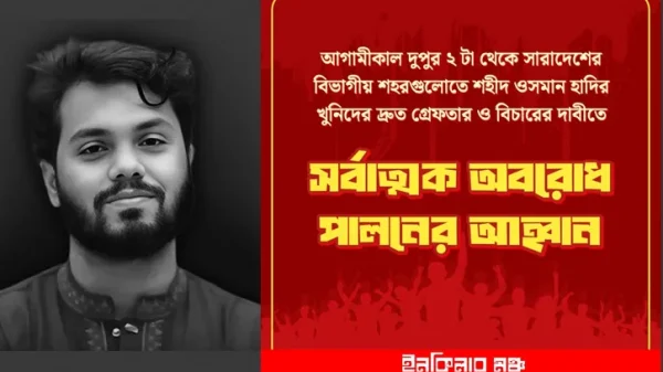 নিজস্ব প্রতিবেদক || শহীদ শরিফ ওসমান বিন হাদির খুনিদের গ্রেপ্তার ও বিচার দাবিতে সারা দেশে অবরোধের ডাক দিয়েছে ইনকিলাব মঞ্চ। রবিবার (২৮ ডিসেম্বর) দুপুর ২টা থেকে দেশের সব বিভাগীয় শহরে সর্বাত্মক