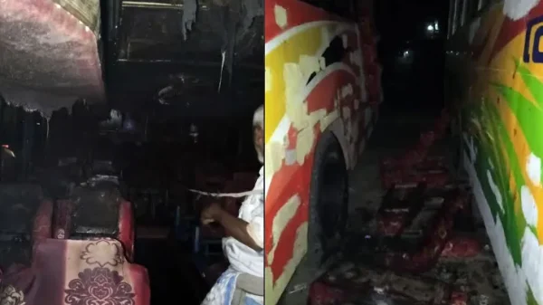 নোয়াখালী প্রতিনিধি || নোয়াখালীর সোনাপুর পৌর বাস টার্মিনালে দাঁড় থাকা একটি বাসের কিছু অংশ আগুনে পুড়েছে। শুক্রবার (১২ ডিসেম্বর) রাতে উপজেলার সোনাপুর পৌর বাস টার্মিনালে এ ঘটনা ঘটে। আগুনে বাসের