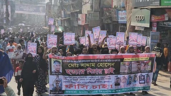 ব্রাহ্মণবাড়িয়ায় সাদ্দাম হত্যা মামলার প্রধান আসামির ফাঁসির দাবিতে বিক্ষোভ