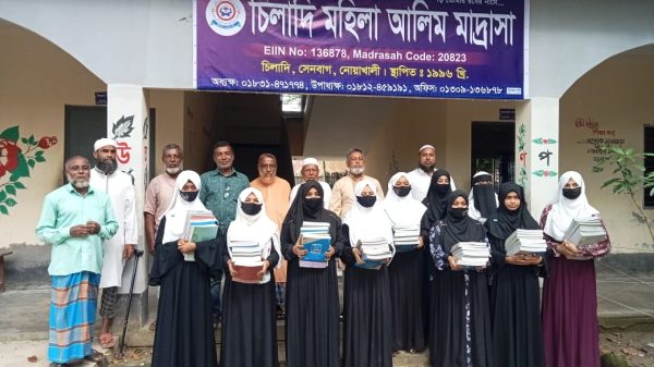 সেনবাগে চিলাদি মহিলা আলিম মাদ্রাসার আলিম ১ম বর্ষের ছাত্রীদের মাঝে বই বিতরণ