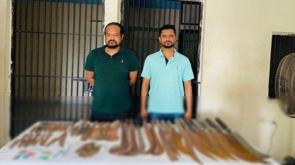 গাজীপুর প্রতিনিধি || গাজীপুরের নাওজোড় এলাকা থেকে বিভিন্ন ধরনের ৪৫টি ধারাল অস্ত্র ও মাদকসহ বাসন থানা বিএনপির সভাপতি তানভীর সিরাজের ভাই ও ভাতিজাকে আটক করেছে যৌথবাহিনী। বুধবার (২৯ অক্টোবর) রাতে তাদের
