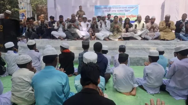 টাঙ্গাইল প্রতিনিধি || বিএনপি চেয়ারপারসন বেগম খালেদা জিয়ার সুস্থতা কামনায় টাঙ্গাইলে বৈষম্যবিরোধী ছাত্র আন্দোলনের উদ্যোগে খতমে কুরআন ও দোয়া মাহফিল অনুষ্ঠিত হয়েছে। বুধবার (৩ ডিসেম্বর) দুপুরে শহরের কেন্দ্রীয় শহিদ মিনারে দোয়ার আয়োজন