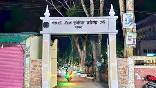 বরগুনা প্রতিনিধি || বরগুনার পাথরঘাটার সিনিয়র জুডিসিয়াল ম্যাজিস্ট্রেটের কামরায় ঢুকে বিচারককে ঘুষ দেওয়ার চেষ্টার অভিযোগে পুলিশের এক উপপরিদর্শক (এসআই) আটক হয়েছেন। সোমবার (৫ জানুয়ারি) দুপুরে এই ঘটনা ঘটে। পরে বিভাগীয় মামলার