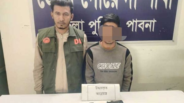 পাবনা প্রতিনিধি || পাবনার ঈশ্বরদী উপজেলায় বিএনপি ও জামায়াতের সমর্থকদের সংঘর্ষে অস্ত্র উঁচিয়ে গুলি করা যুবক তুষার হোসেন (২১) গ্রেপ্তার হয়েছে। অস্ত্র উঁচিয়ে গুলি করার ভিডিও এবং ছবি সামাজিক যোগাযোগ মাধ্যমে
